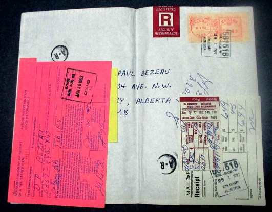 Then my parents suggested that I summarize this unpublished book and mail a copy of the summary to myself so that there would be proof of when I wrote it from the postal marks. So, I mailed a summary to myself on January 28, 1992. That postal package is still in my possession and available for inspection. A photograph of that postal package is below: