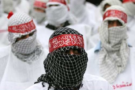 The first character of the original text looks like two swords crossed, and crossed swords is another symbol of Islam. Look at the following Arabic text used on the Islamic Revolutionary Flag used by the Chechens: